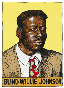This image of Blind Willie Johnson (garnered from the Internet) is particularly charming to me because the artist is Robert Crumb, my favorite “underground” cartoonist of the 1960s and 1970s.
