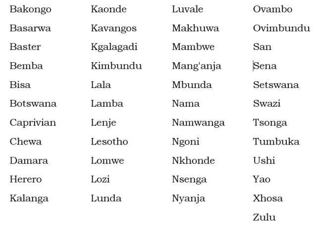 Southern Africa has ethnically diverse inhabitants too. The basic groupings are: